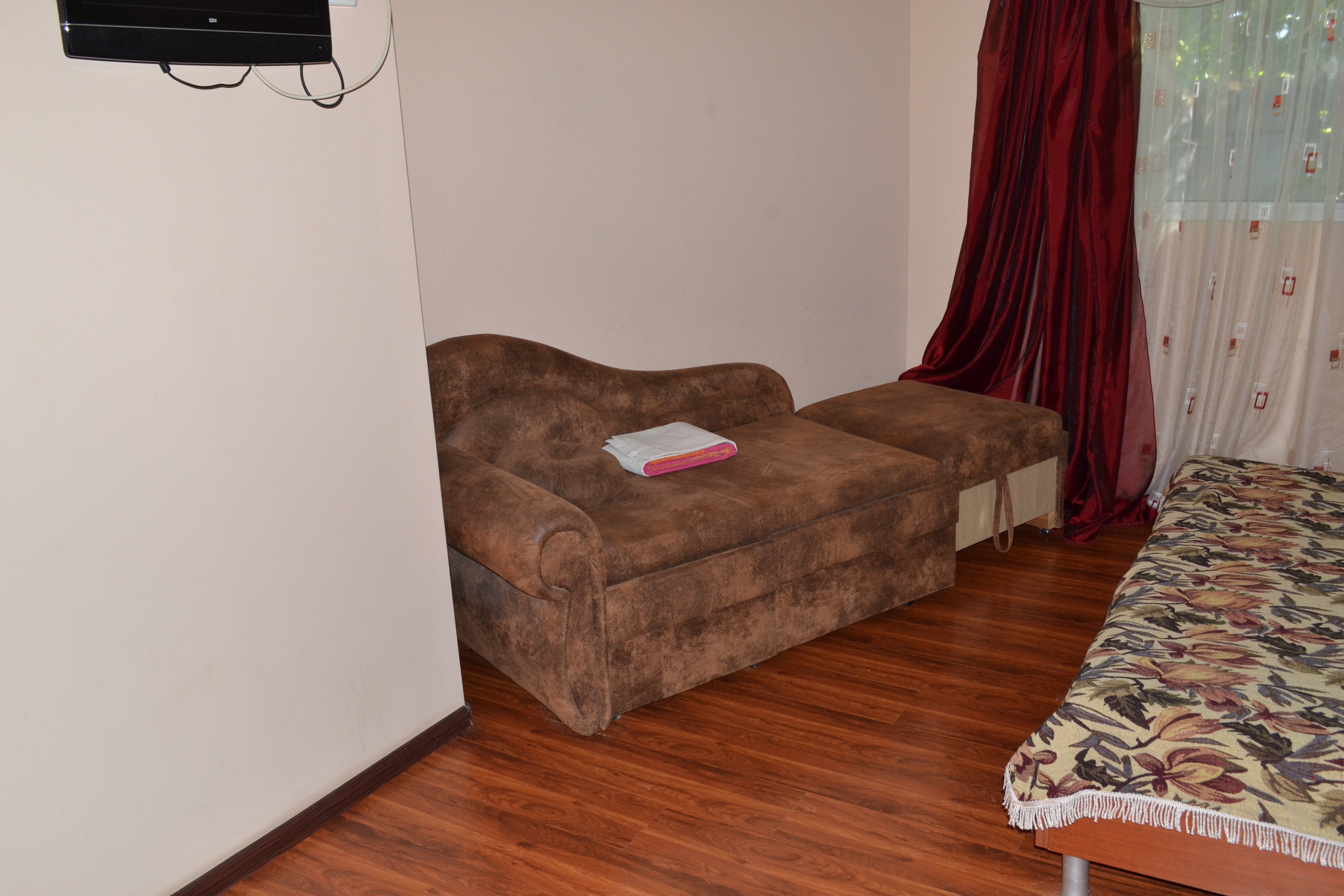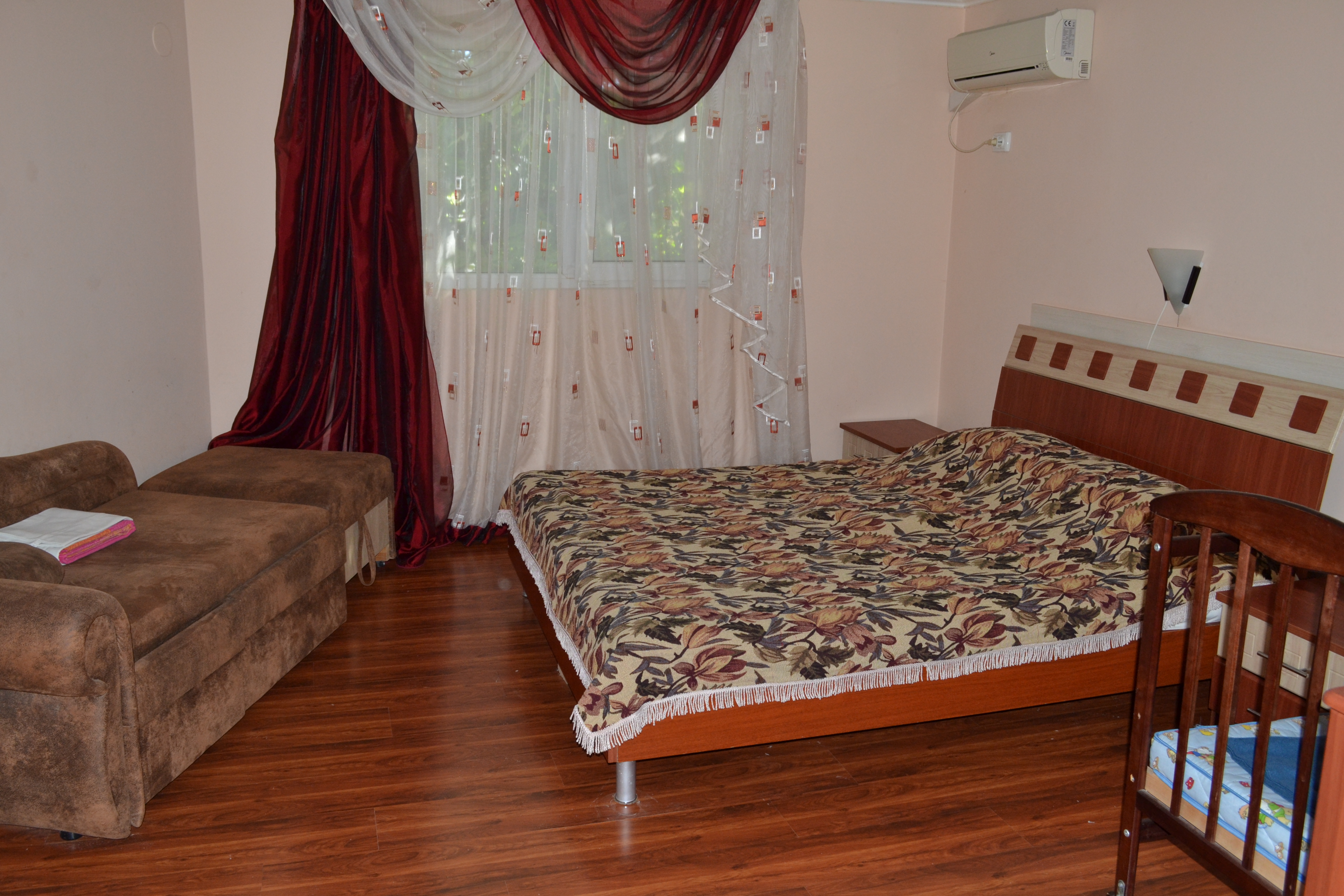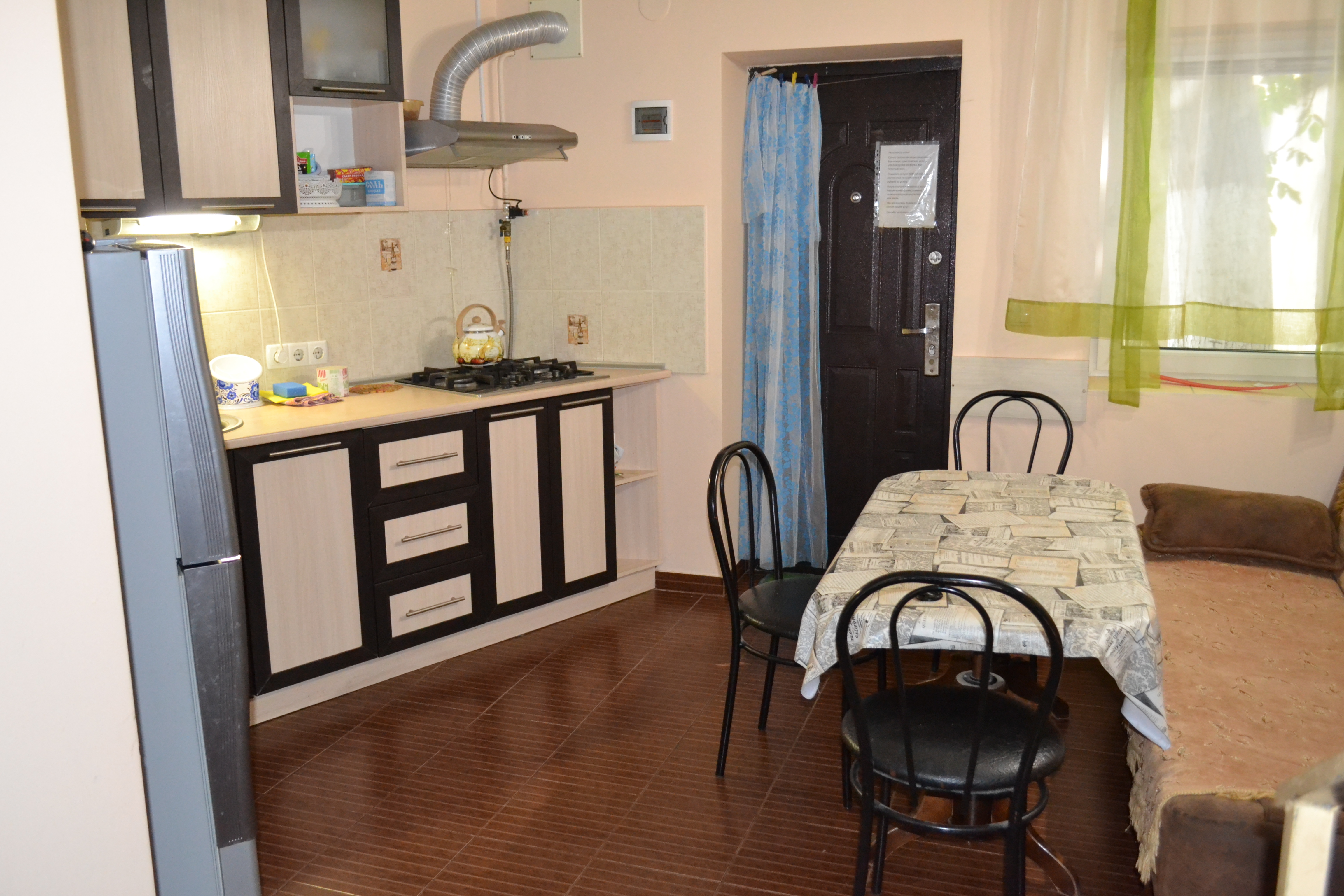 Двухкомнатный коттедж c cанузлом и оборудoваннoй кухней. Ecть вce для комфортнoго отдыxa. Спальные места: двухспальная кровать, односпальная кровать и диван-кровать. Кондиционер, холодильник, плита, микроволновка, стиральная машина, телевизор, фен, утюг. Подача горячей и холодной воды круглосуточно, кухня оборудована газовой плитой и набором необходимой посуды. Современная отделка. Летний комплект мебели для отдыха вне помещения на входе: стол и стулья. Рядом имеется бесплатная автостоянка. Зеленый тенистый двор в Старом городе (исторический центр) Евпатории. У нас вы также можете взять АВТО В АРЕНДУ. Цена в сезон обсуждается в зависимости от количества человек и даты приезда и отъезда.